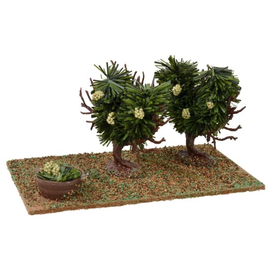 Terreno coltivato con viti e cesto di uva bianca, ideale per creare la vegetazione nel vostro Presepe. Consigliato per statue di altezza 6-8 cm.