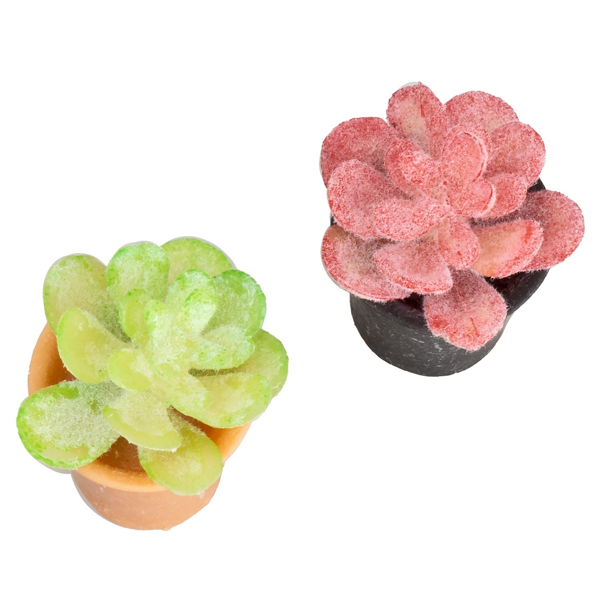 Miniature succulent plant pot, available in assorted colors. The pot has a circular and simple shape and contains a plant that faithfully emulates succulents. Recommended for figurines of 8-10 cm height.