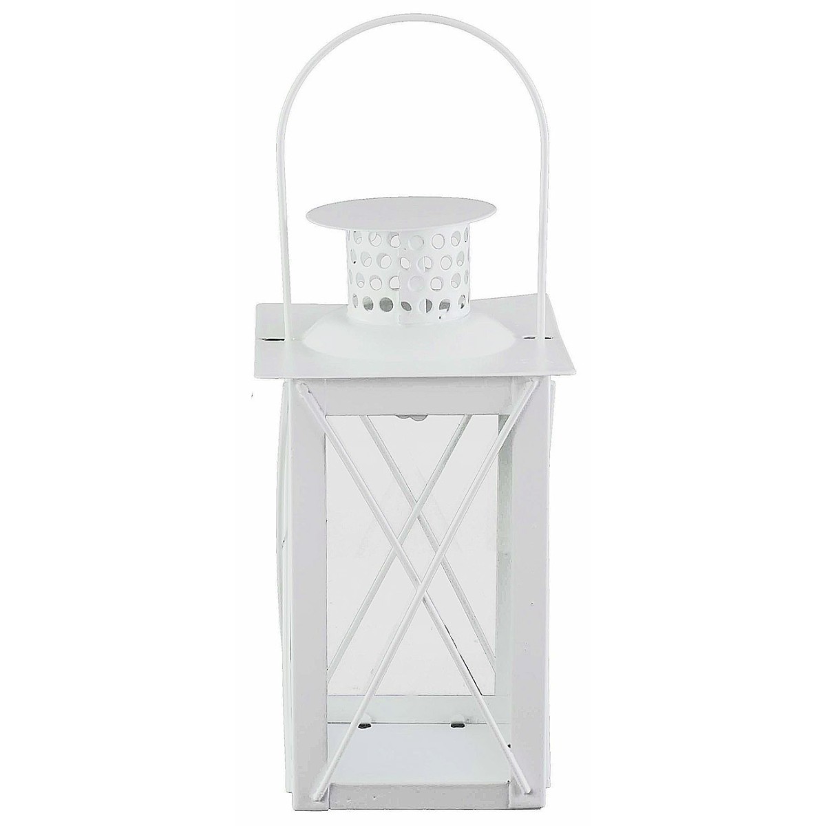 White metal lantern with lid surmounted by a perforated cylinder and glass walls, the upper part opens allowing you to place tealights or candles inside. Various types of articles are available on our site to illuminate it.