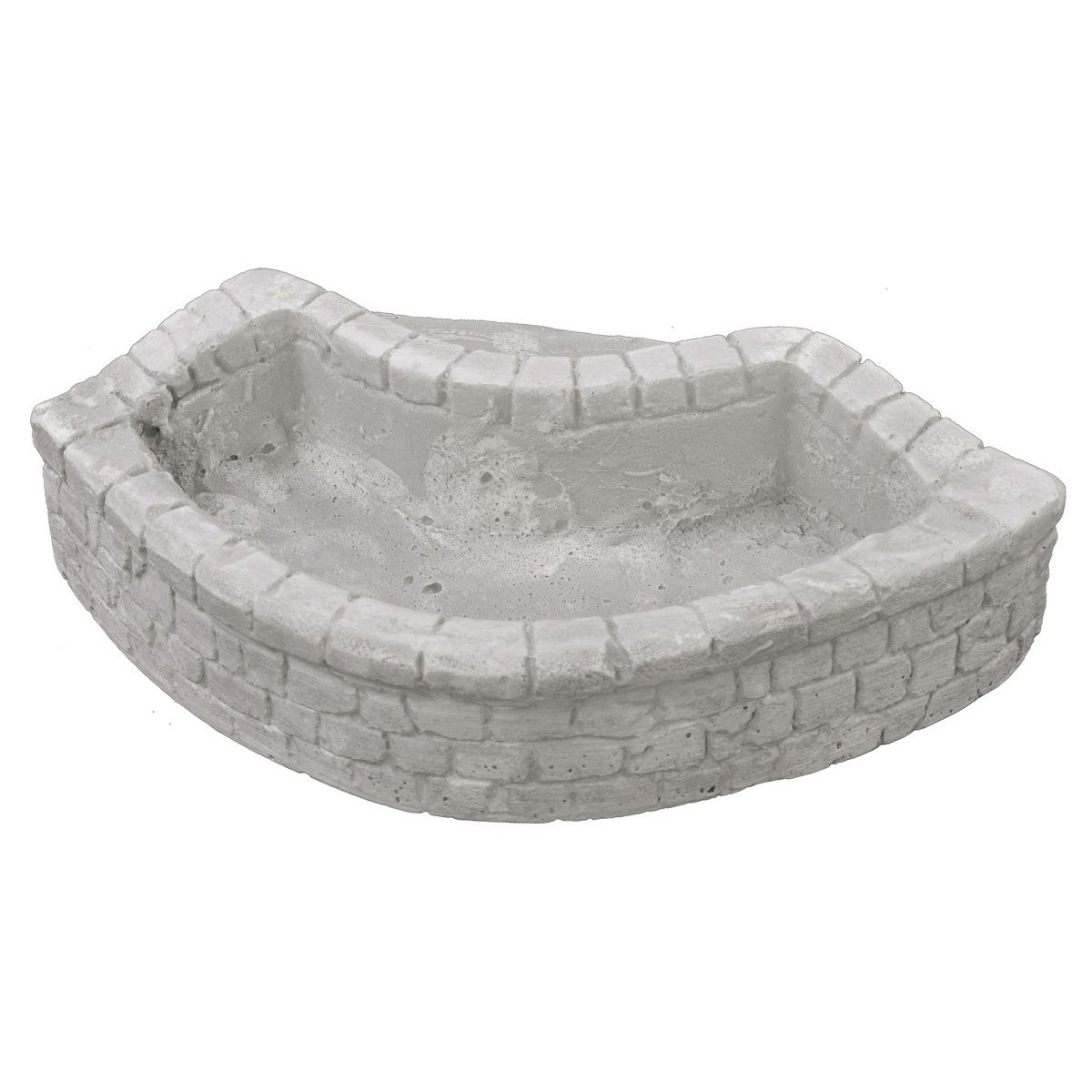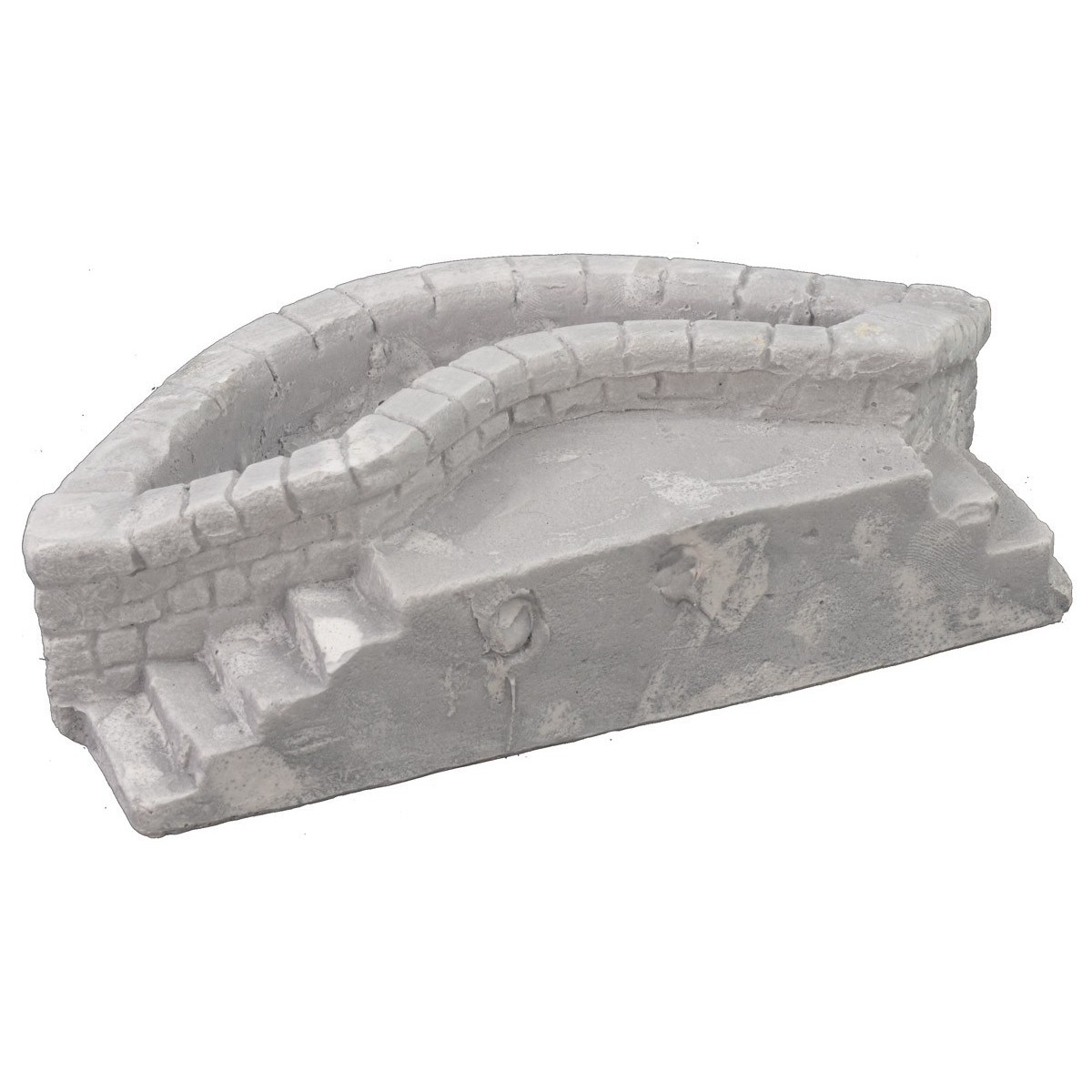 Lavatoio in gesso ceramico realizzato a mano, ideale per arricchire scene di vita quotidiana del Presepe fai da te. La vasca, decorata a pietra, presenta una forma arcuata ed è possibile accedervi tramite due scalinate retrostanti. Consigliata per statue di altezza 8-10 oppure 8-10 cm.