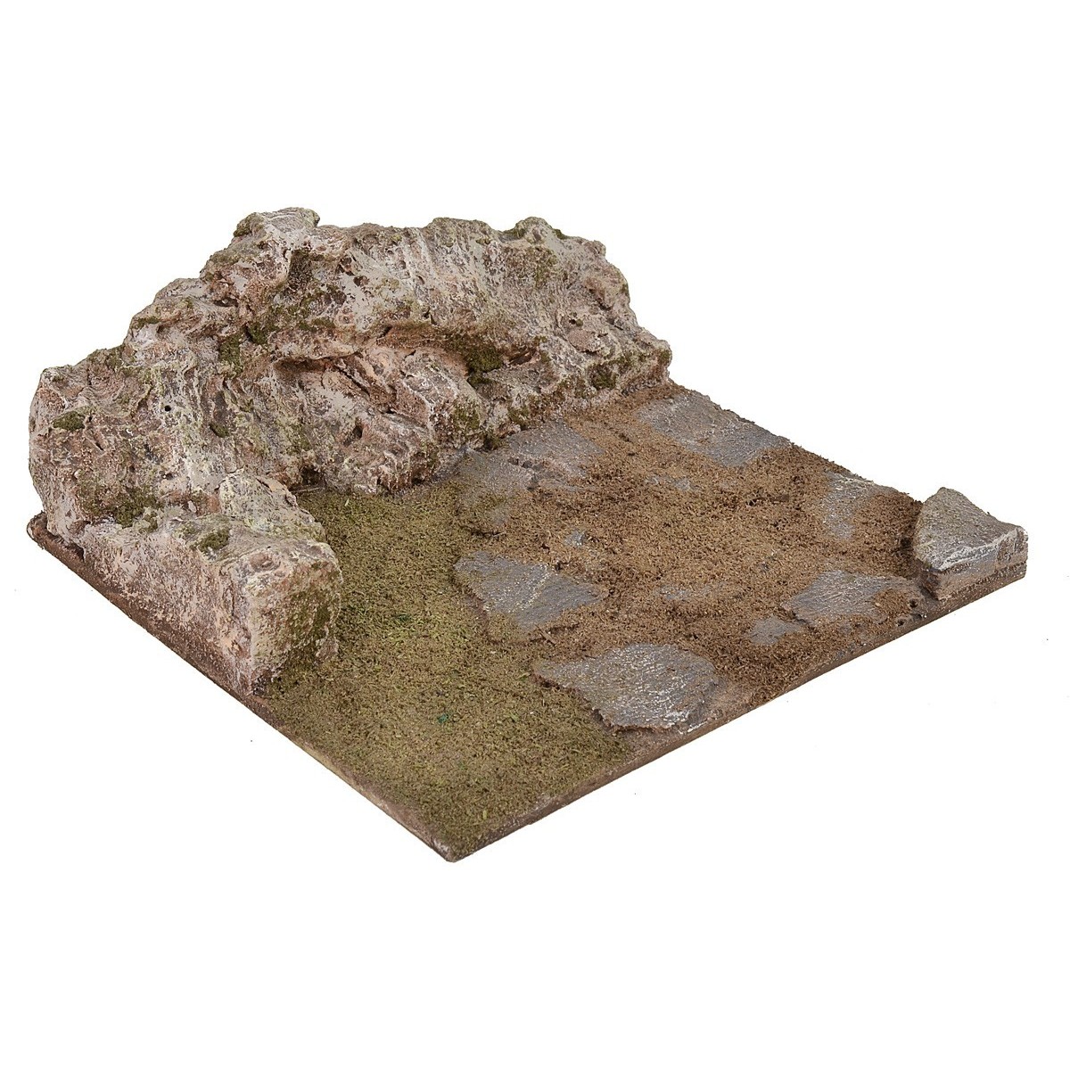 Curve for Modular Crib the ends are finished with a low cork edge on one side and a stone wall on the other. This piece is part of a series available in related products that will allow you to customize the route of the road in your classic popular nativity scene to your liking. This article has been produced by Italian craftsmen in wood and polystyrene for 10 cm high statues.