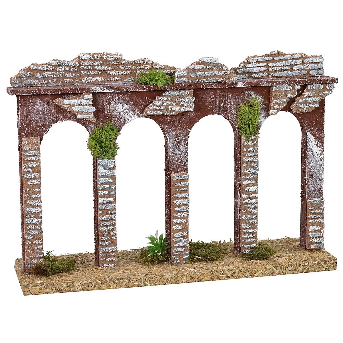 Roman aqueduct that channeled water from mountain sources to bring it to the inhabited villages downstream, a piece characterized by high arches with walls and upper walls finished with white bricks. This item is recommended for 5-6 cm tall statues and was made with wood, cork and moss.