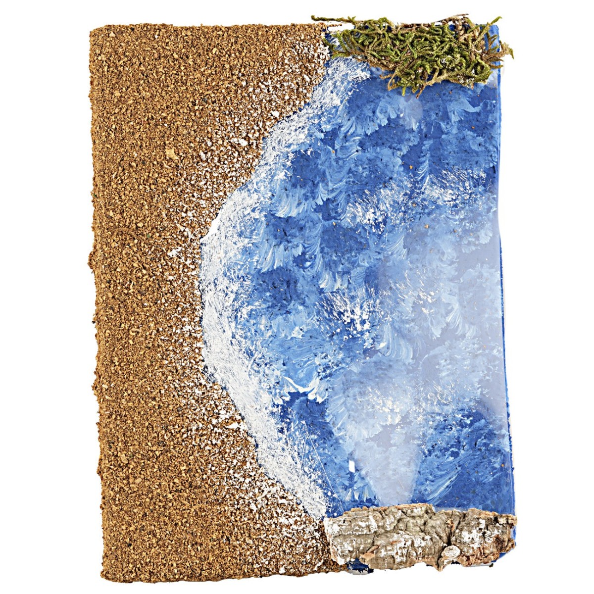 Beach section with sea and depth effect. The product is handcrafted in Italy with wood, moss, and cork. It is ideal for creating marine settings. The item is part of a collection of modular pieces available in related products under the table.