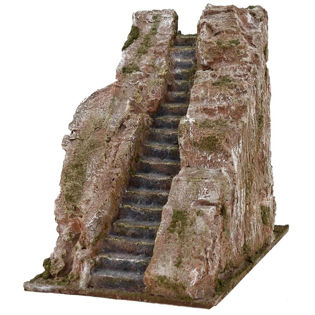 Scalinated for presepe stipe Popolare inserted into a rock wall, with 18 steep steps to funnel, for the artisanal realization of this product we have used, wood and polystyrene, it is recommended figurines with a height of cm 8-10.