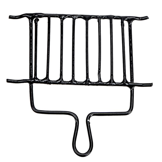 Accesorio de metal negro diseñado para simular las rejillas utilizadas en las chimeneas o en los hornos. Ideal para complementar ambientaciones de cocinas, talleres o escenas de fuego en el belén.