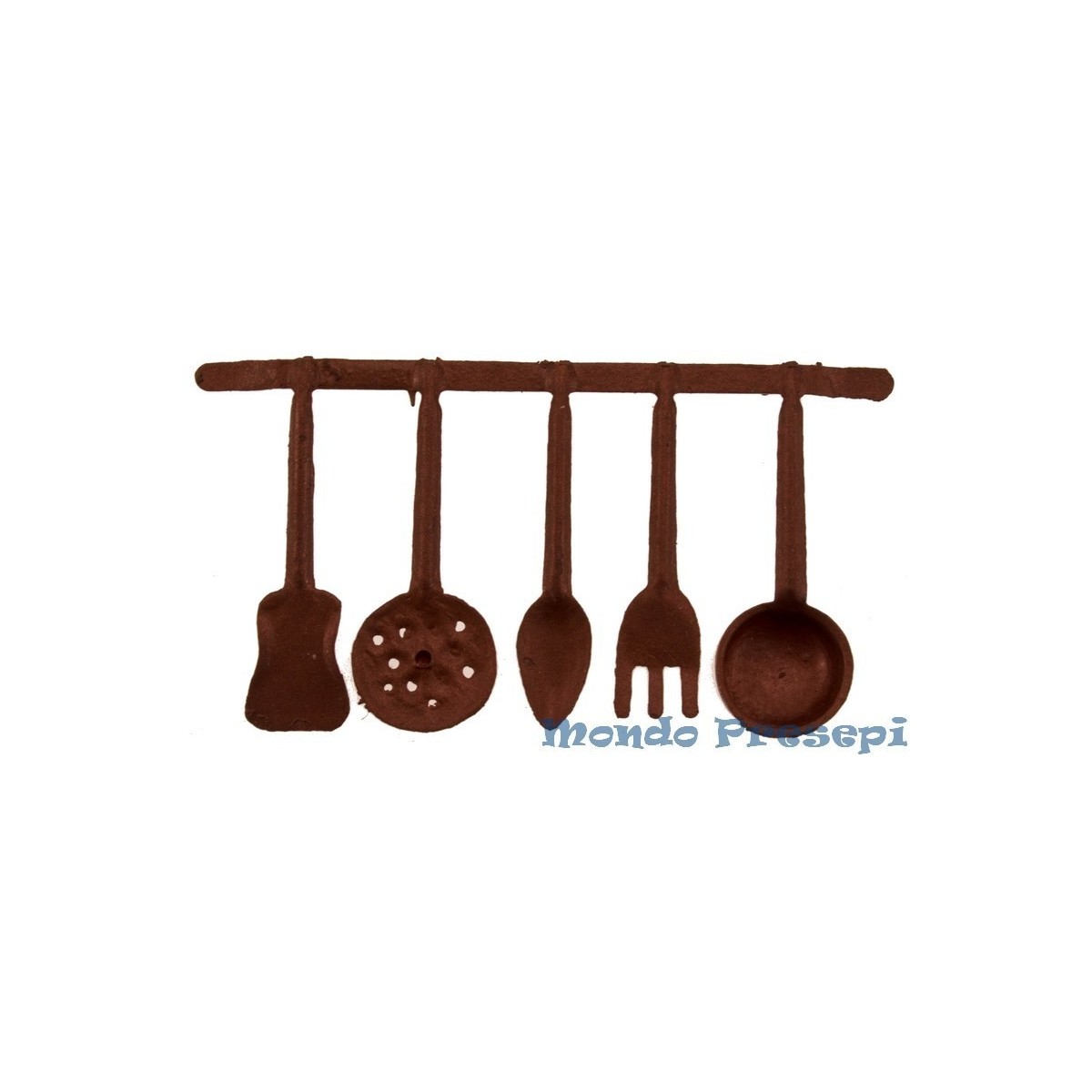 Cucharón con soporte de 7,5 cm, longitud de los cucharones 4 cm en plástico efecto cobre.