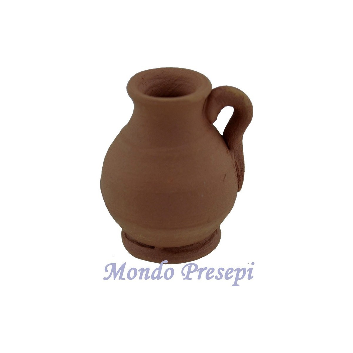 Cántaro de terracota en miniatura, completo con asa, ideal para ambientaciones de mercado, tiendas o cocinas dentro del pesebre.