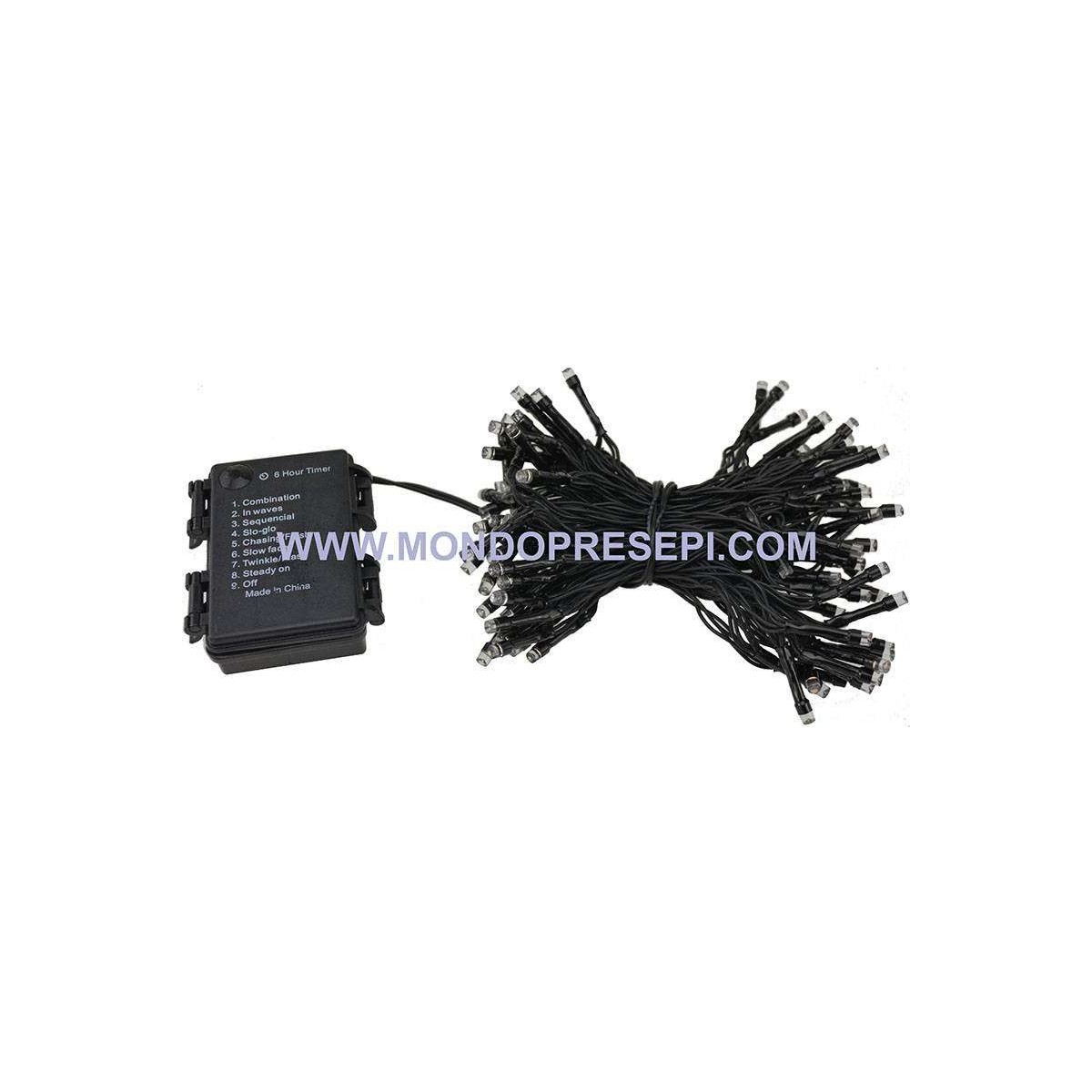 Cadena de 144 LED luz blanca fría con temporizador de encendido automático para uso interior y exterior, con 8 juegos de luces, funciona con baterías 3xAA (no incluidas) comprables por separado cód: