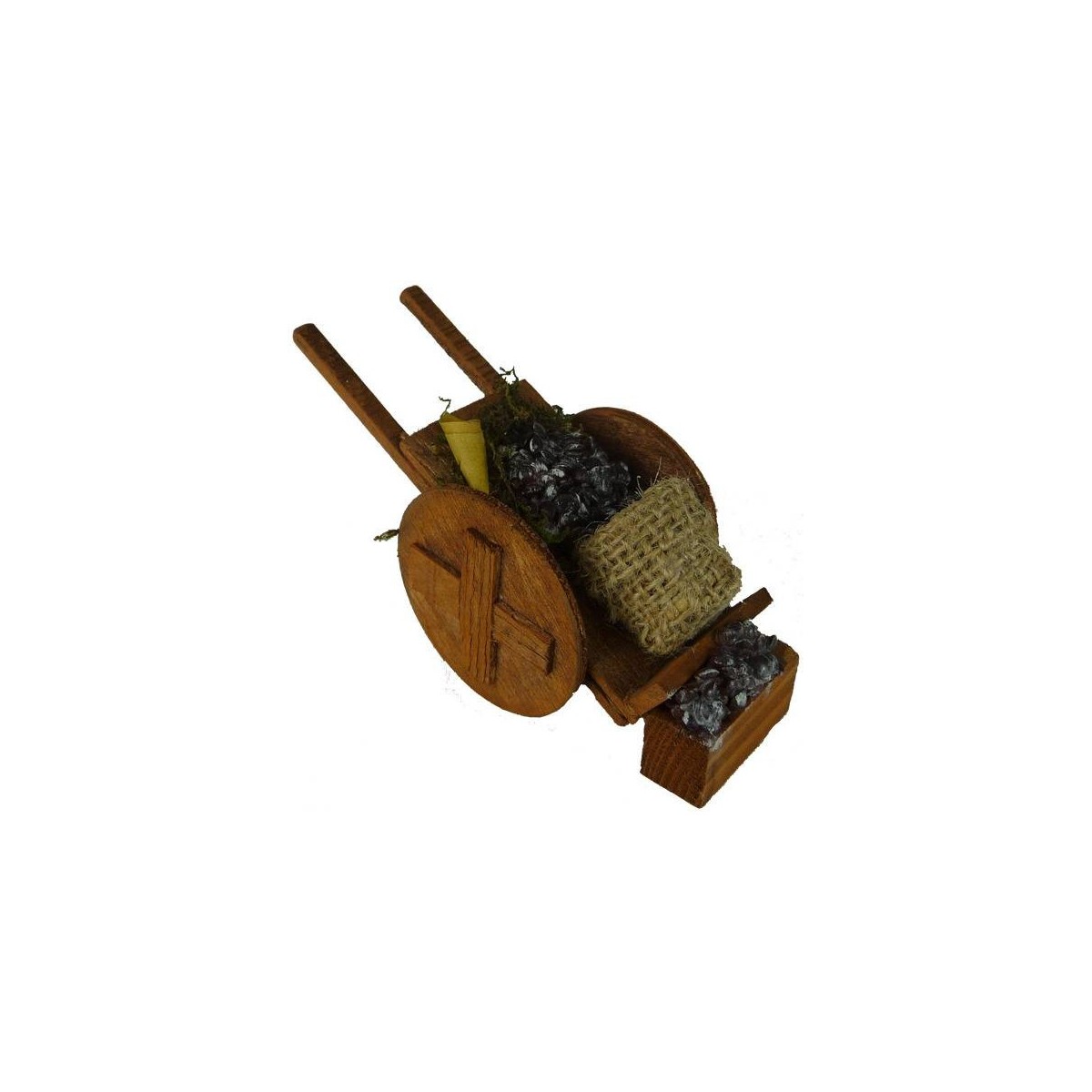 Carrito de castañas de madera con dos grandes ruedas laterales. El carrito puede ser colocado horizontalmente cerca de una estatua para simular un movimiento o verticalmente apoyado en el suelo para la exposición de las mercancías en venta: las castañas. Producto enteramente hecho en Italia por manos artesanas expertas y adecuado para estatuas de altura 10-11-12 cm. El artículo está bien proporcionado, terminado en los detalles y podrá aportar un toque de originalidad a tu Belén.
