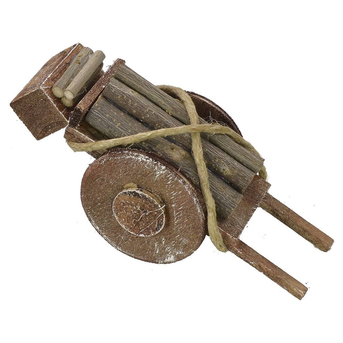 Carreta con leña apilada para Belén, recomendada para estatuas de altura de 10-12 cm. Producto realizado artesanalmente en Italia por manos expertas utilizando madera.