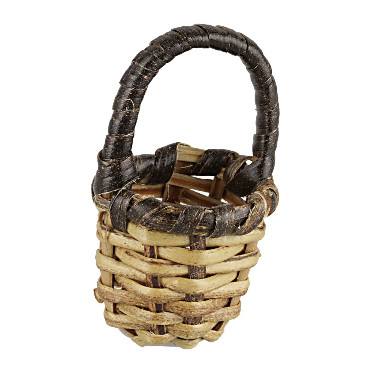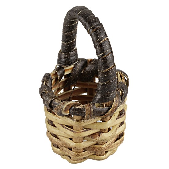 Cesta de mimbre en miniatura ideal para decorar con los mínimos detalles el pesebre hecho a mano. El artículo es recomendado para estatuas de altura de 6 a 8 cm.