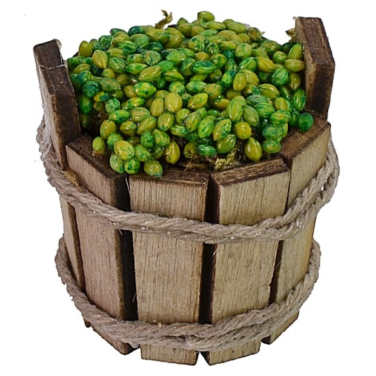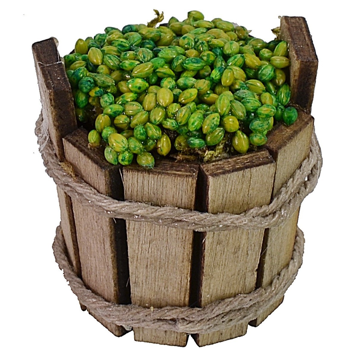 Tina de madera oscura con aceitunas muy realista, miniatura para belén realizada completamente a mano, recomendada para estatuas de altura de 8-10 cm.