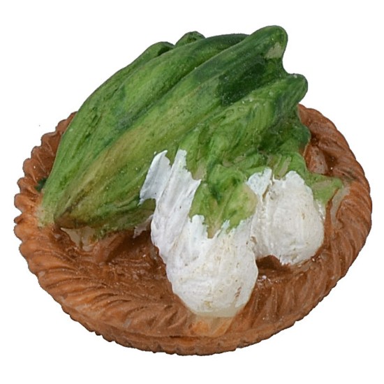 Cesta con calabacines e hinojos en resina pintada a mano, recomendado para estatuas de altura de 10-12 cm.