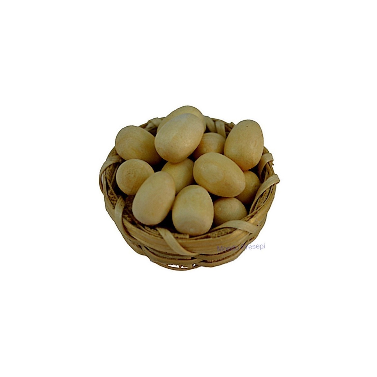 Cesta de mimbre con huevos ø 3 cm -miniaturas para belén