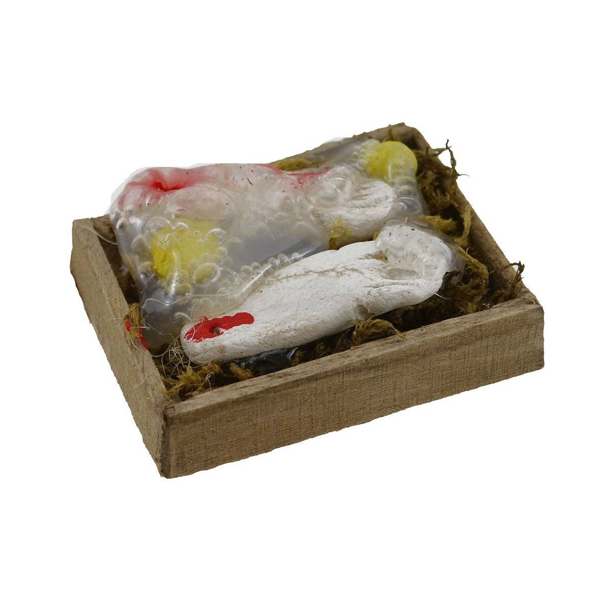 Caja de madera con pescado y limón recomendada para estatuas de altura de 8 a 10 cm. Al ser un producto hecho a mano, puede variar ligeramente con respecto a la foto.