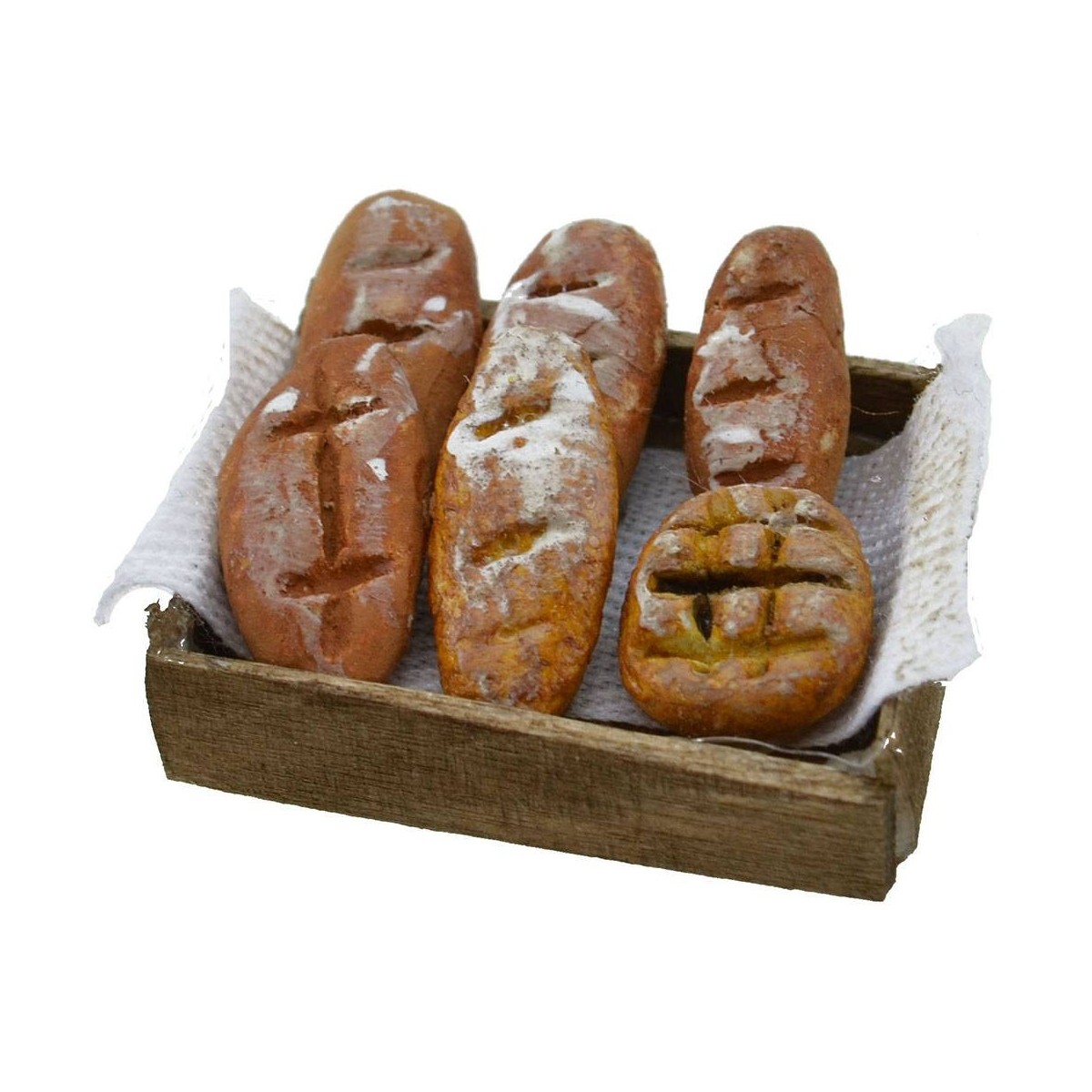 Caja de madera con pan y mantel en varios colores. Recomendado para estatuas de altura cm. 8-10-12