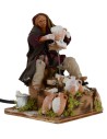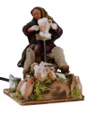 Ceramista sentado que con el movimiento del pie gira el plato sobre el que está colocada la ánfora que está creando. La estatua está realizada en terracota y pintada a mano en Italia por hábiles manos artesanas con ropa de tela. El mecanismo está oculto bajo una construcción de madera rodeada de ánforas. Figuras adecuada para el Belén Napolitano clásico y de altura 14 cm.