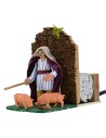 Criador de cerdos en movimiento. Estatua realizada en terracota y pintada a mano en Italia por hábiles manos artesanas, el artículo está bien acabado con ropas de tela. Figura adecuada para el Belén clásico popular de altura 8 cm.