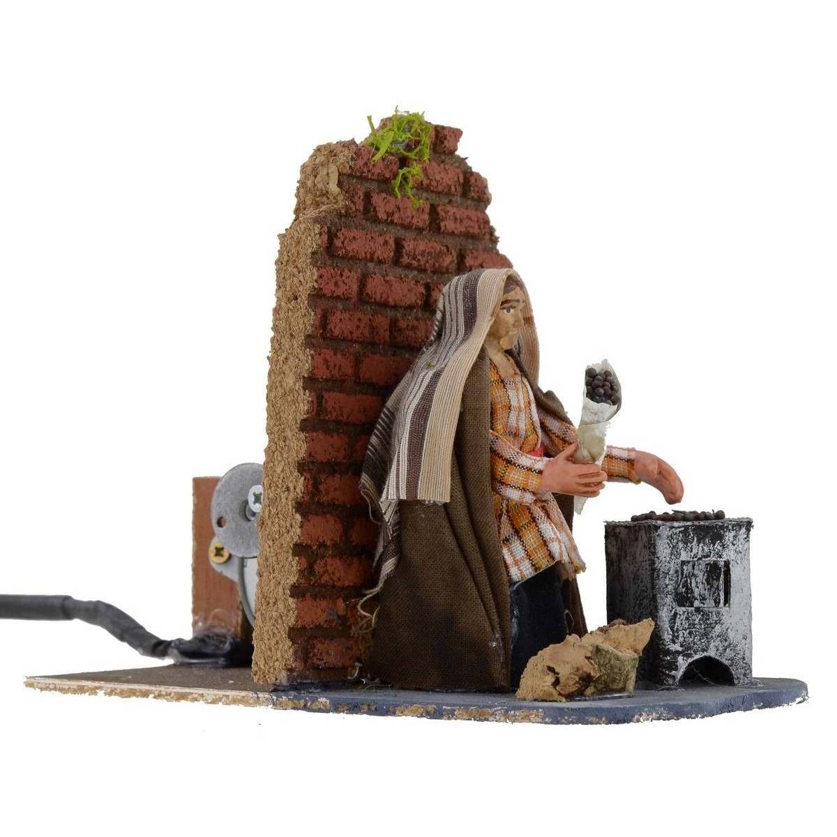 Vendedor de castañas en movimiento. Estatua realizada en terracota y pintada a mano en Italia por hábiles manos artesanas, el artículo está bien acabado con ropa de tela. Figura adecuada para el Belén clásico popular de altura 8 cm.
