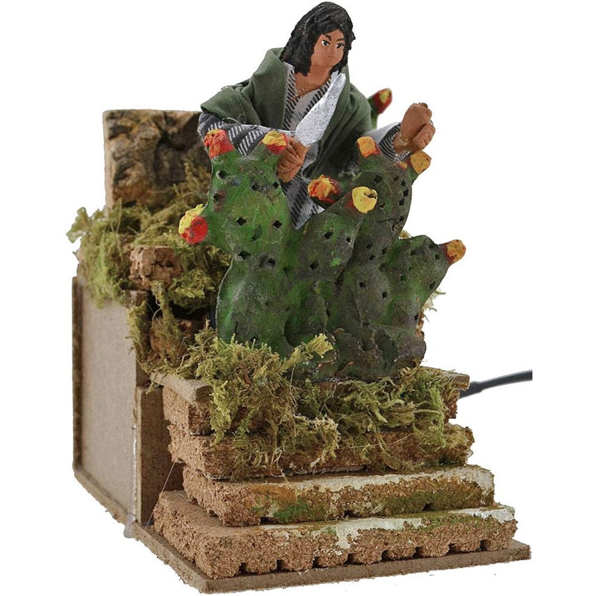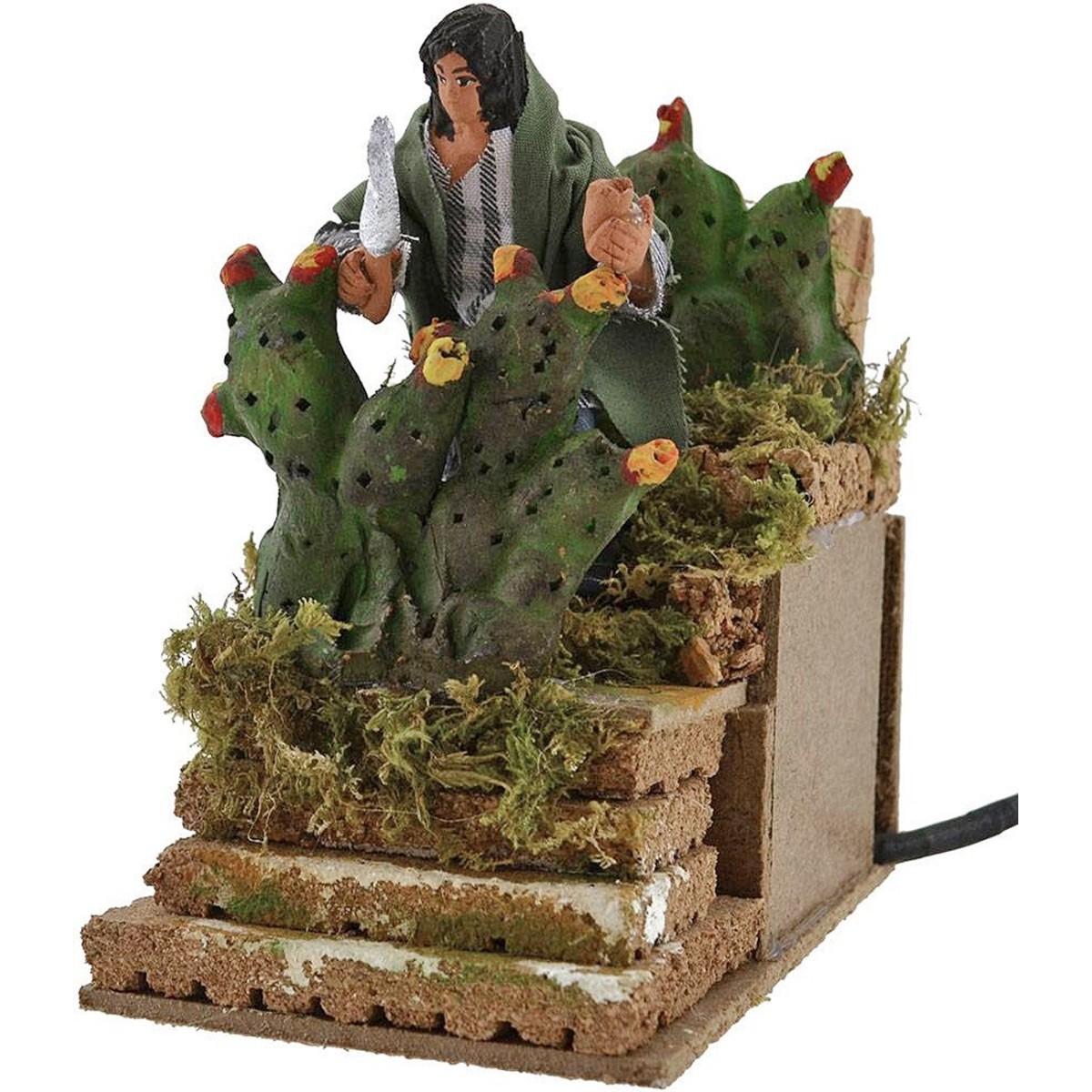 Hombre en movimiento de terracota vestido con tela que corta el higo, funcionando con corriente.