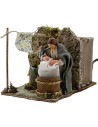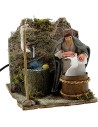 Lavandera en movimiento, funciona con corriente. Estatua en movimiento para belén realizada en terracota vestida con tela, altura de las estatuas 8 cm. Siendo artículos realizados completamente a mano, los colores de las vestimentas y algunos pequeños detalles pueden variar respecto a la foto del producto.