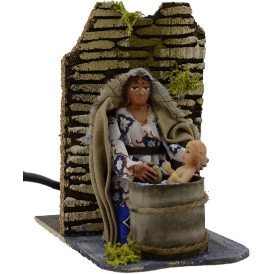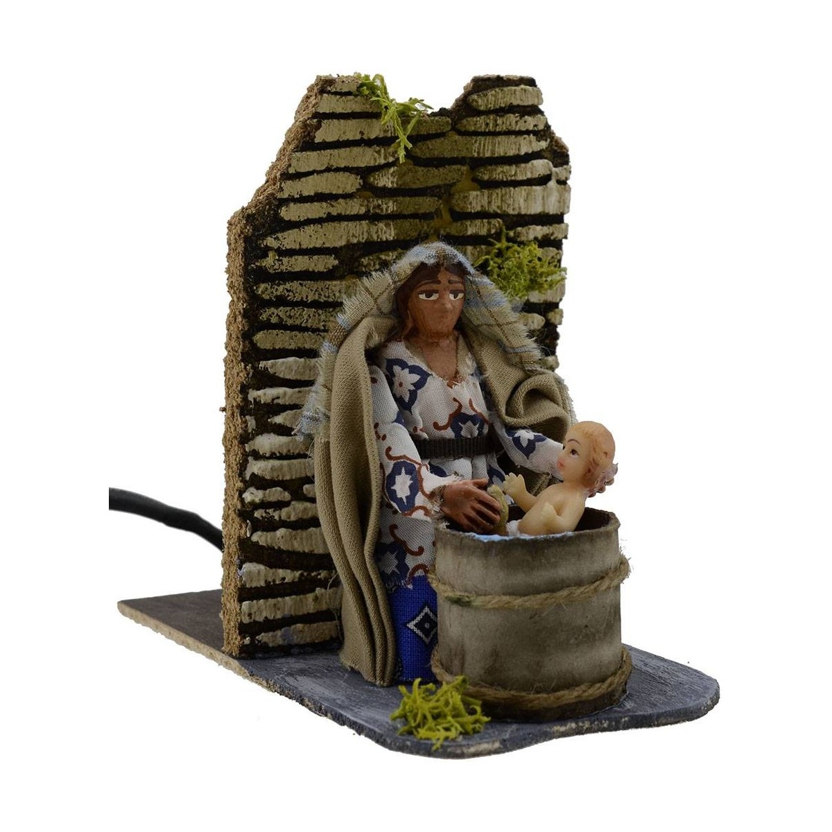 Mamá en movimiento bañando al bebé, estatuas de terracota vestidas con tela, altura 8 cm.