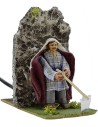 Agricultor de terracota vestido con tela en movimiento que azada, altura 8 cm.
