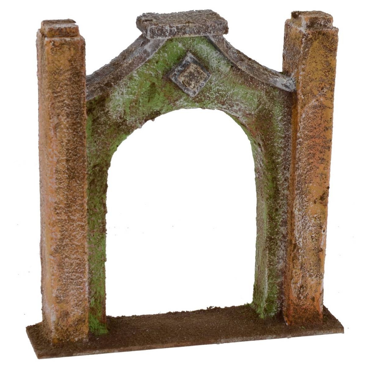 Puerta de entrada con arco de la ciudad, sostenida por dos columnas laterales que pueden representar el muro al que fue colocada. Esta ambientación creada por artesanos italianos para el Pesebre clásico popular en Poliestireno y corcho, resulta adecuada para estatuas de altura 8-10 cm. Esta pieza puede ser utilizada para personalizar y decorar los ambientes exteriores de vuestro Pesebre.