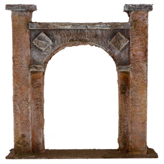 Puerta de entrada de arco de la ciudad, sostenida por dos columnas laterales que pueden representar el muro al que estaba colocada. Este escenario creado por artesanos italianos para el Belén clásico popular en Poliestireno y corcho, es adecuado para estatuas de altura 8-10 cm. Esta pieza puede ser utilizada para personalizar y decorar los ambientes exteriores de su Belén.