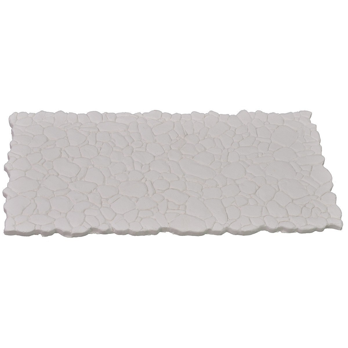 Pavimento blanco modular realizado en yeso. El producto se recomienda para realizar diferentes estructuras de su Belén de bricolaje: viviendas, pavimentos y muros pequeños (es posible cortar el pavimento con una sierra de calar o una pequeña amoladora). El motivo efecto piedra de tamaños mixtos del pavimento está bien acabado en los detalles y tiene un aspecto realista.