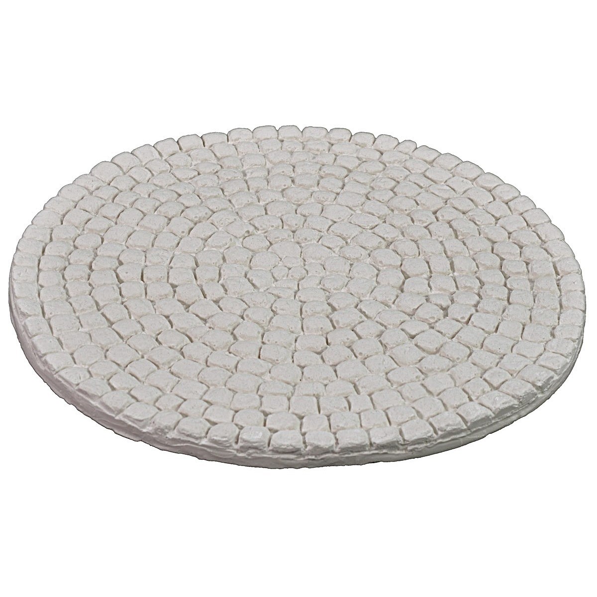 Pavimento circular de adoquines de yeso, ideal para completar espacios al aire libre del pesebre hecho a mano.