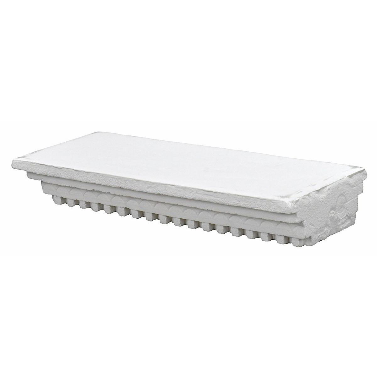 Arquitrabe de esquina en yeso compuesta por dos elementos, ideal para decorar templos o fachadas de edificios del belén hecho a mano; en la parte superior se caracteriza por una corona ondulada que termina abajo con encajes de forma cuadrada. El artículo ha sido producido por artesanos italianos y puede ser personalizado aún más gracias al uso de colores acrílicos.