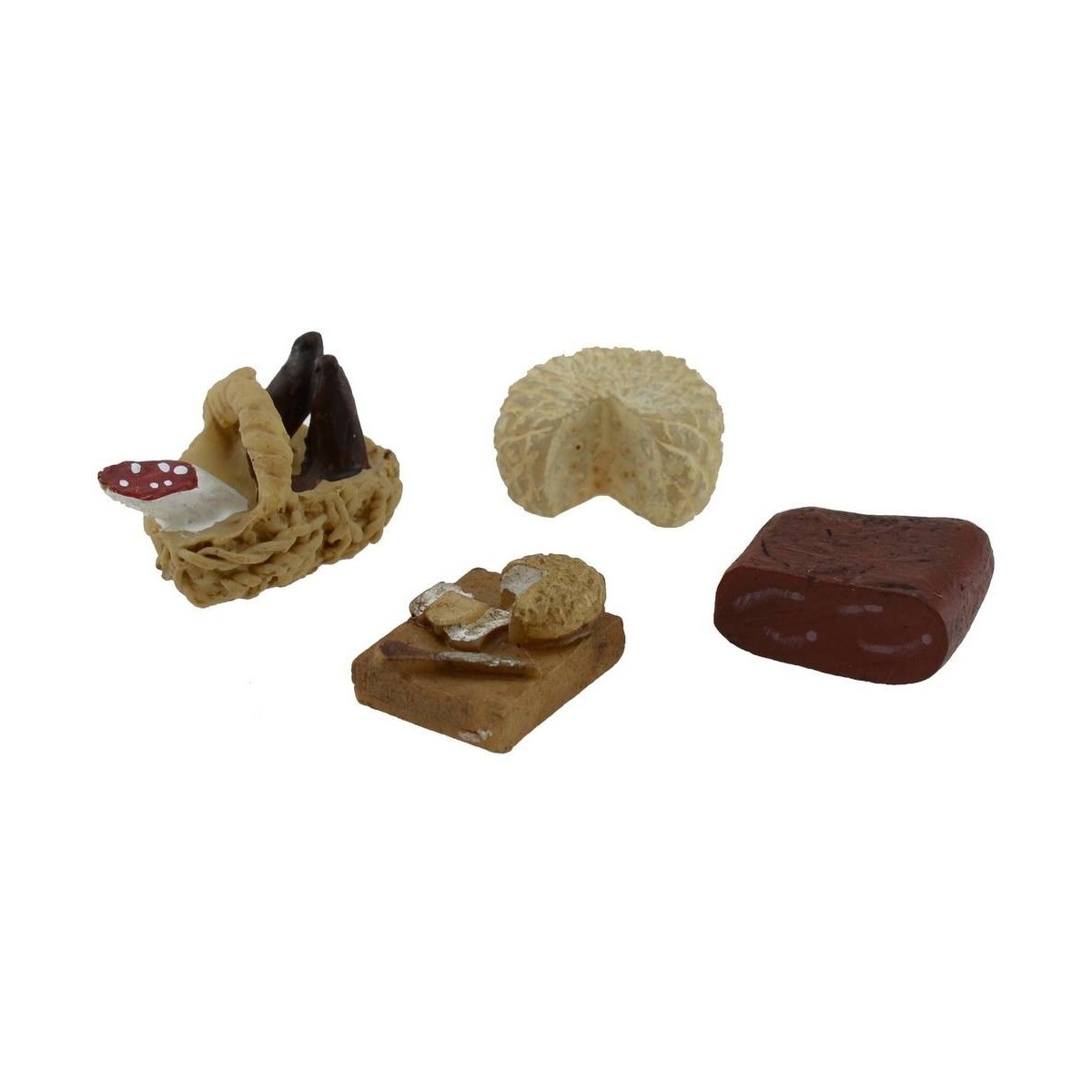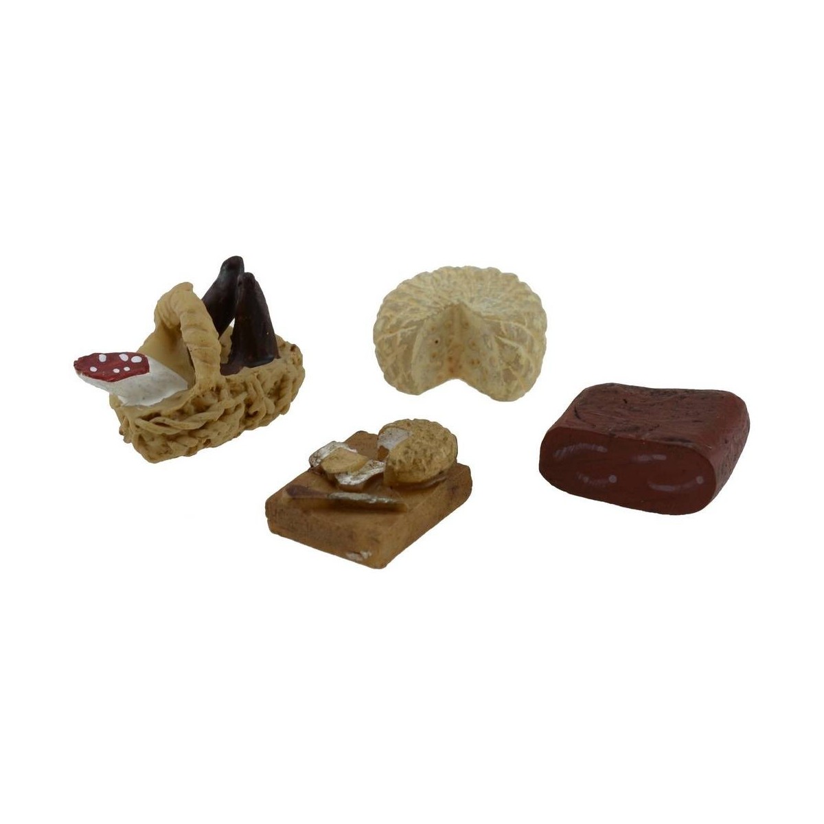 Set de 4 piezas de embutidos y quesos surtidos en resina, recomendados para estatuas de 8-10 cm.