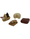Set de 4 piezas de embutidos y quesos surtidos en resina, recomendados para estatuas de 8-10 cm.