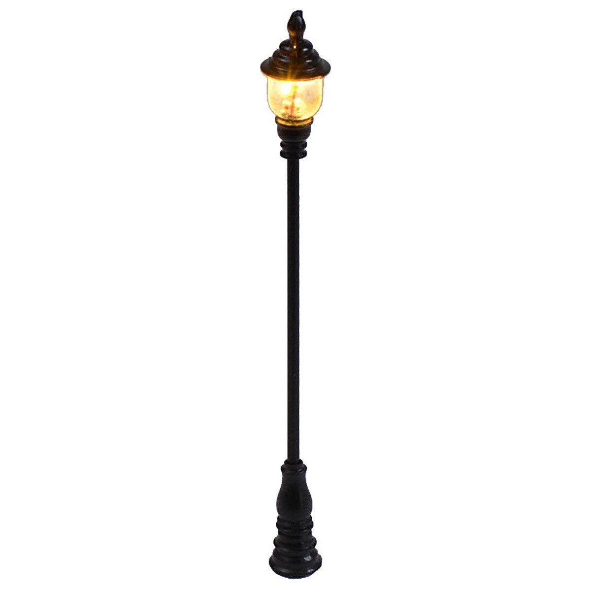 Farola de calle con linterna circular y luz LED cálida de 3V, recomendada para estatuas de altura de 3,5-4 cm e ideal para belenes hechos a mano y modelismo. En los terminales de los cables se puede añadir un cable delgado para conectar al enchufe de baja tensión (no incluido), el enchufe luego debe insertarse en el adaptador con regleta de tensión variable disponible con 5 o 10 tomas. Alternativamente, a los terminales de los cables se pueden conectar directamente terminales comunes que, a su vez, se insertarán en el adaptador universal cortando el enchufe presente. Todos los accesorios mencionados anteriormente se pueden encontrar debajo de la tabla en los productos relacionados.