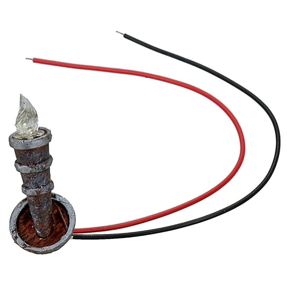 Antorcha de pared con led rojo parpadeante funcionando a 12 voltios, pintada a mano y recomendada para estatuas de altura de 10 a 12 cm. Para el funcionamiento es necesario conectar la spina para la baja tensión (no incluida) al final de los terminales del cable, la clavija debe ser insertada en el alimentador con multi toma a tensión variable disponible en 5 o 10 tomas, alternativamente, se puede conectar utilizando los comunes conectores al alimentador universal cortando el conector presente. Todos los accesorios mencionados anteriormente, los pueden encontrar debajo de la tabla en los productos relacionados.