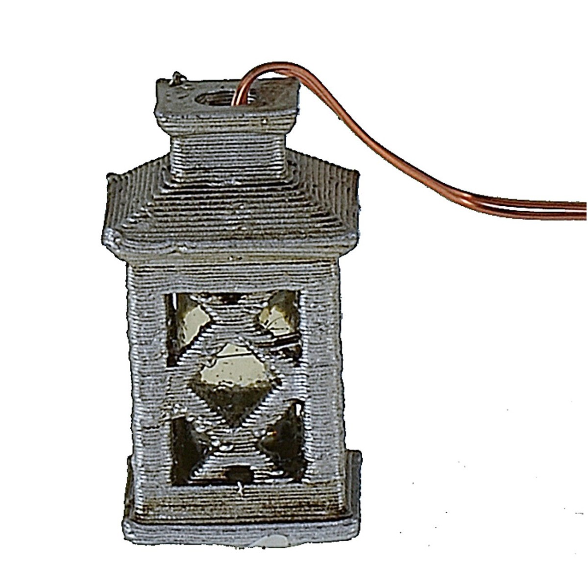 Linterna bien acabada que funciona a baja tensión con luz LED amarilla, recomendada para estatuas de altura 12-14 cm. Para el funcionamiento se puede conectar a los terminales del cable el enchufe para baja tensión (no incluido), el enchufe luego debe insertarse en el alimentador con regleta a tensión variable disponible con 5 o 10 tomas. Alternativamente, a los terminales del cable se pueden conectar los comunes terminales que se insertarán a su vez en el alimentador universal cortando el conector presente. Todos los accesorios mencionados anteriormente los pueden encontrar debajo de la tabla en los productos relacionados.