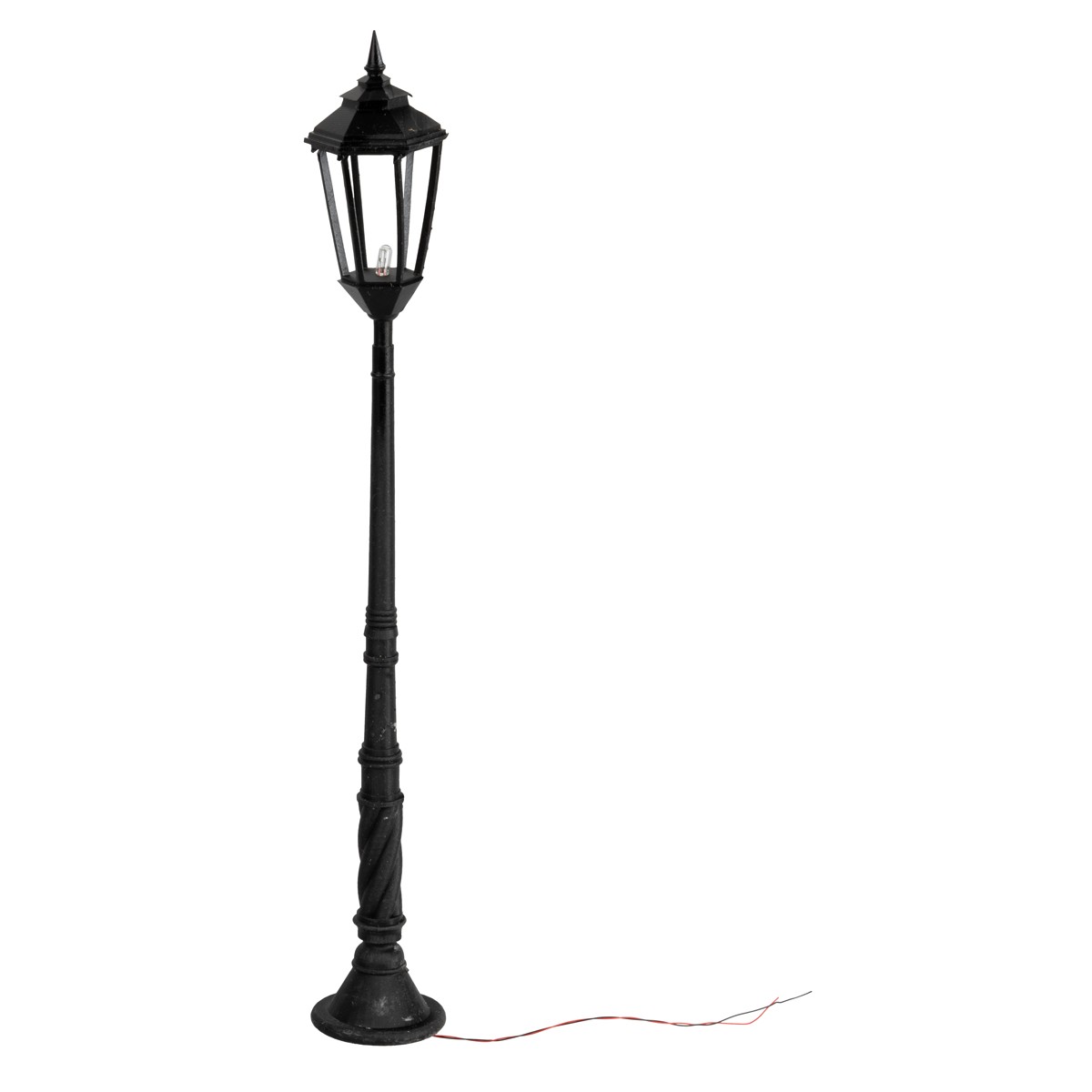 Farola de suelo equipada con una microlámpara de 12V, con tono blanco cálido. Es ideal para belenes de bricolaje y proyectos de modelismo. Es posible prolongar el cable usando una bobina de hilo fino. Para la conexión, será necesario montar un enchufe de baja tensión (no incluido), para insertar en la fuente de alimentación múltiple de tensión variable, disponible en versiones de 5 o 10 tomas. Alternativamente, es posible conectar todo utilizando terminales comunes para fijar a los extremos del cable. Estos pueden insertarse en la fuente de alimentación universal, previa eliminación del conector presente. En los productos relacionados bajo la tabla están disponibles los accesorios mencionados arriba.