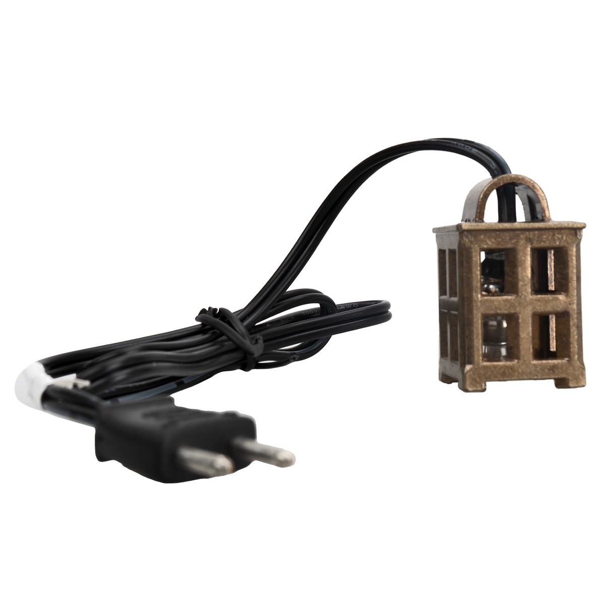Linterna de metal efecto bronce a 3,5 voltios completa con clavija.