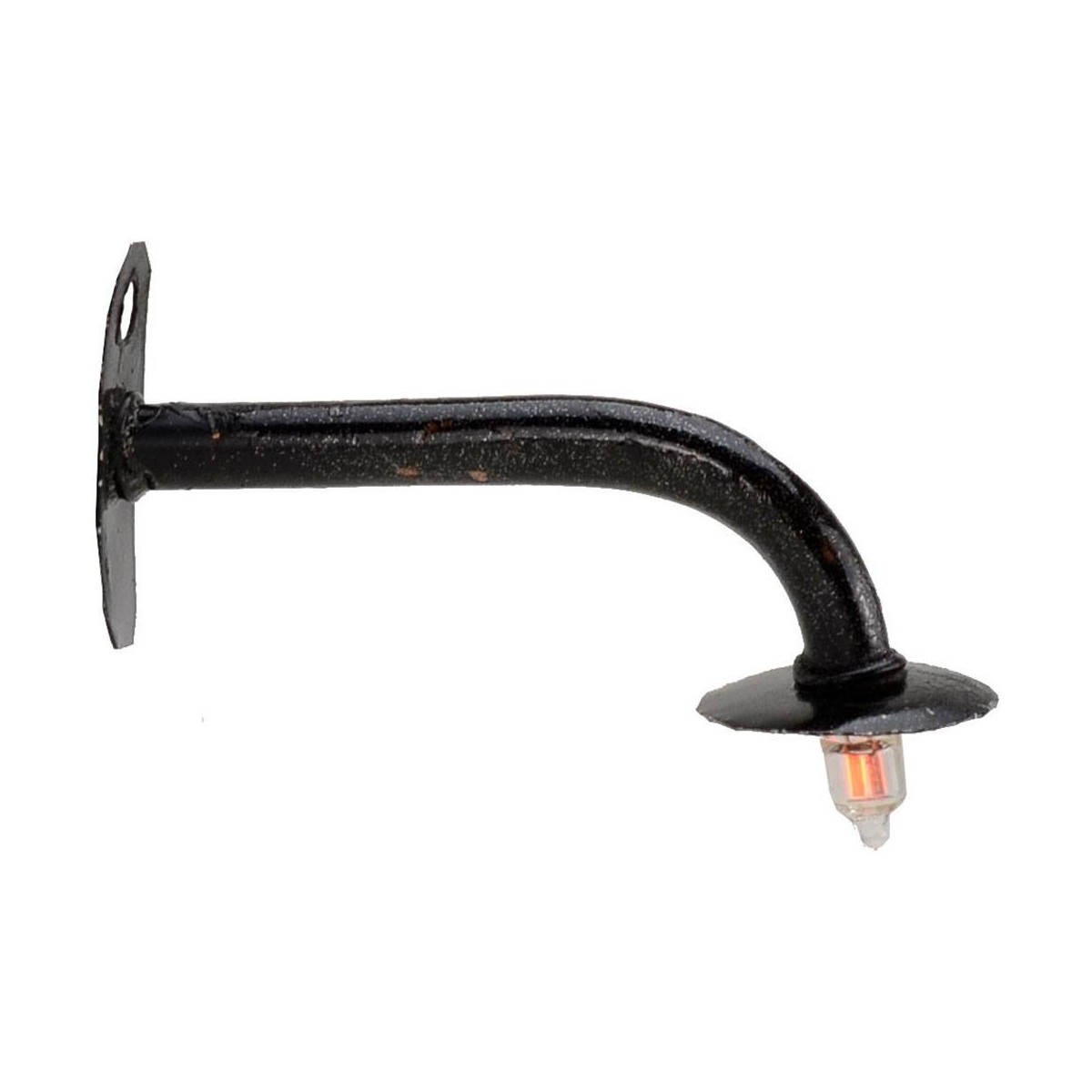 Farol de pared con plato de metal, la luz tenue es de color naranja y funciona con corriente. Del farol salen 2 cables que deben conectarse mediante una regleta eléctrica a un cable con enchufe, siendo faroles conectados a la electricidad se recomienda la máxima precaución. Artículo recomendado para estatuas con altura real de 8 cm a 10 cm.