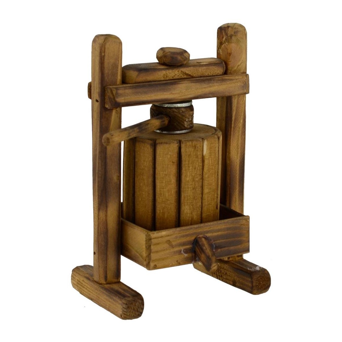 Prensa de palanca de madera para extraer el mosto de orujos, recomendada para estatuas de altura 12-14 cm.
