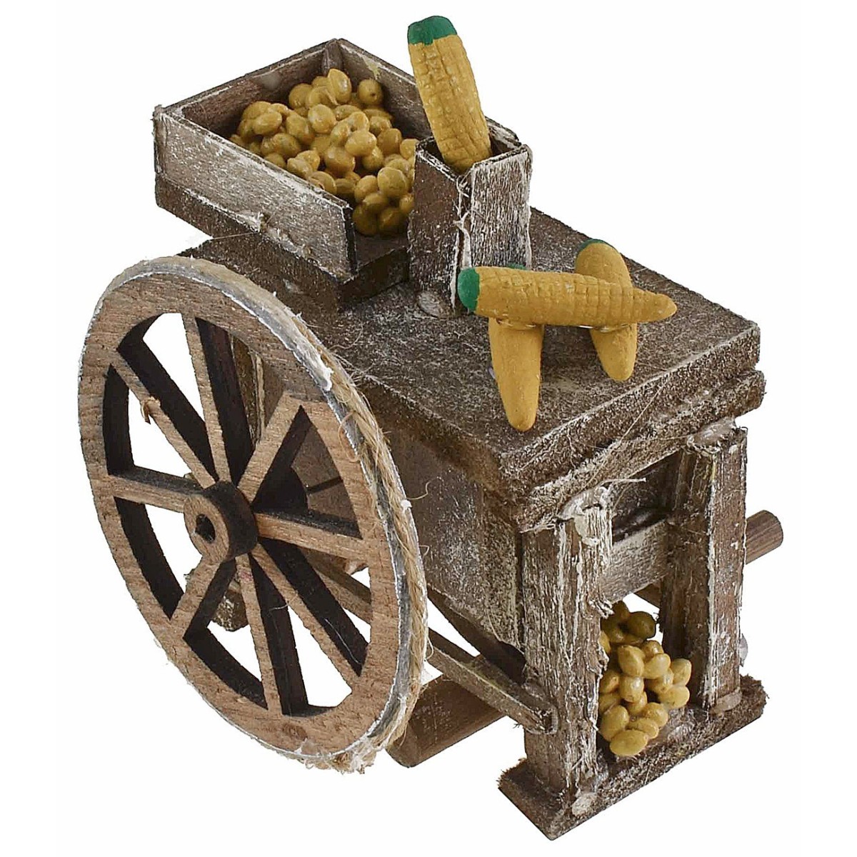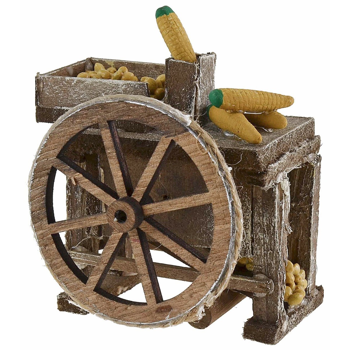 Molino para maíz realizado en madera por artesanos italianos, en la superficie hay mazorcas y maíz y en el lado está la rueda que se puede hacer girar manualmente mediante una manivela ubicada a la derecha. La herramienta es ideal para enriquecer ambientes de campo en el belén. El artículo es recomendado para estatuas de altura 10-12 cm y se precisa que al ser un producto hecho a mano podría variar ligeramente respecto a la foto. En la sección MINUTERIE están disponibles muchos accesorios para belén para combinar.