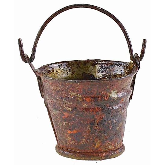Cubo de metal oxidado h 2,8 cm con asa h 4,5 cm.