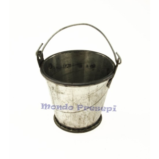 Cubo en miniatura de metal con asa, accesorio en miniatura para decorar el pesebre.