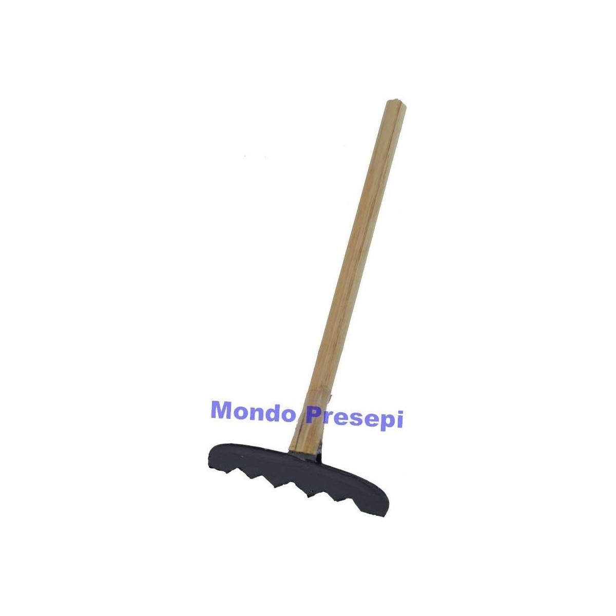 Rastrillo de metal con mango de madera.