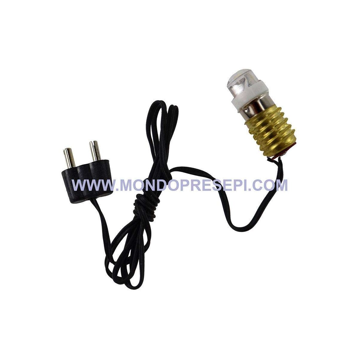 Luz led luz blanca cálida 3-3,5 Volt con portalámparas E10 completo de cable de 50 cm de largo y enchufe para baja tensión, puede ser conectada a los siguientes alimentadores o porta pilas: