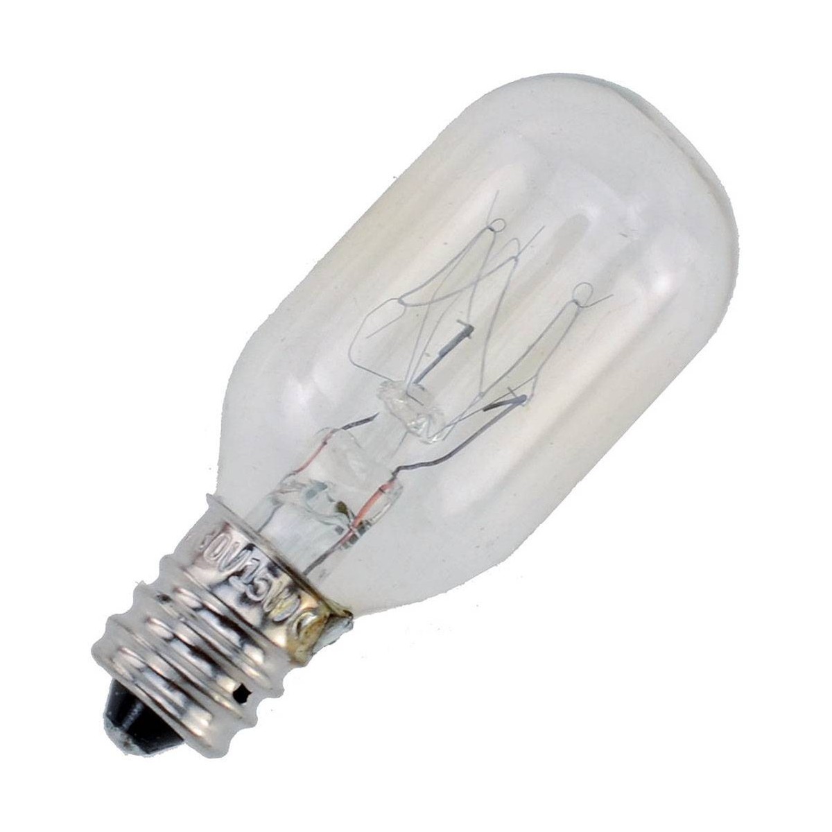 Bombilla incandescente de luz blanca cálida tradicional, casquillo E12, funcionando con corriente.