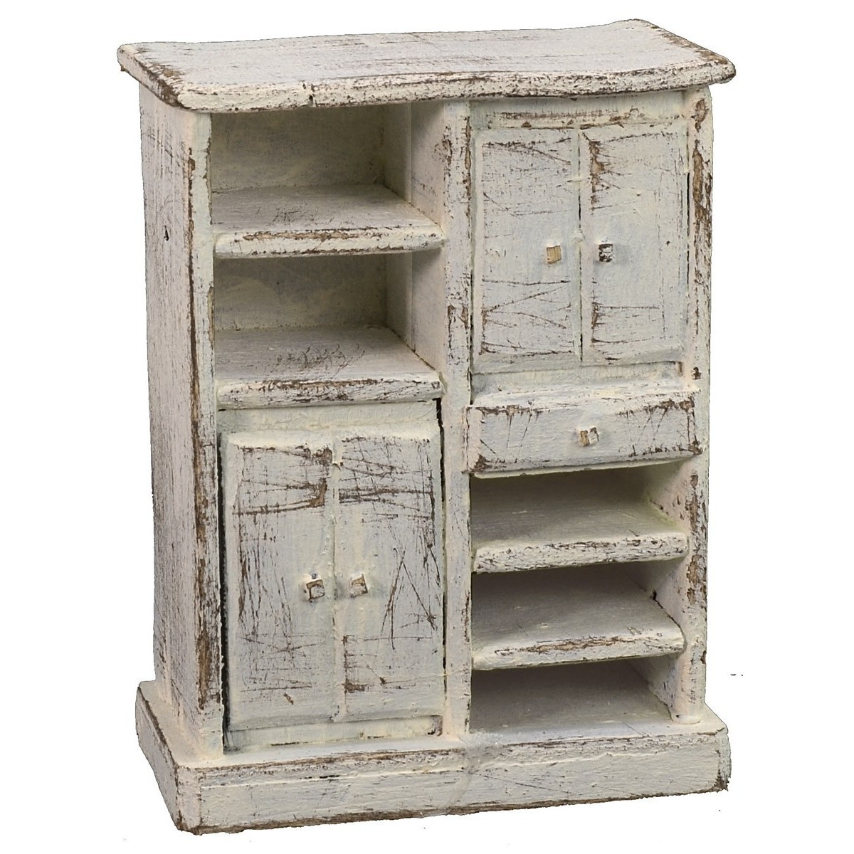 Mueble de cocina o sala de estar en madera blanca compuesto por algunos compartimentos cerrados con puertas y algunas estanterías donde es posible decorar utilizando las miniaturas disponibles en nuestro sitio. El artículo ha sido producido por artesanos italianos y se recomienda para estatuas de 10 cm de altura. En los productos relacionados debajo de la tabla se encuentran otros complementos de decoración de la misma serie para completar sus ambientes.