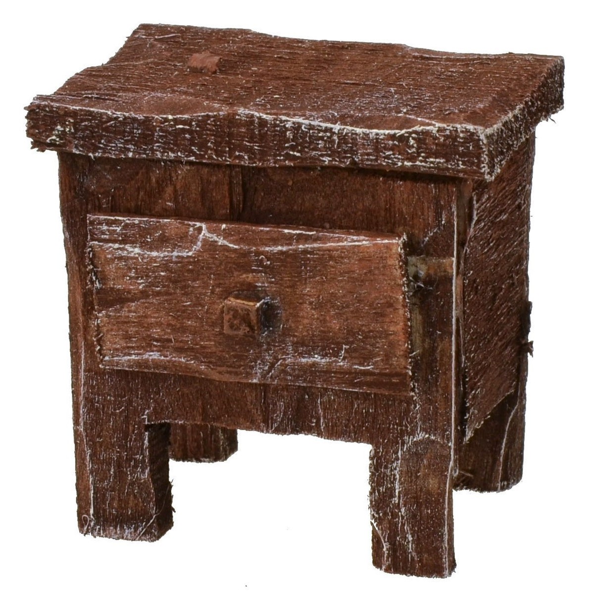 Mesita de noche de madera envejecida ideal para completar habitaciones de Belenes hechos a mano o casas de muñecas. El artículo ha sido producido por artesanos italianos y se recomienda para estatuas de altura 12 cm. En la categoría dedicada a las MINUTERIE hay disponibles muchos accesorios para poder personalizar este objeto y en los productos relacionados bajo la tabla se encuentran otros complementos de la misma serie para poder completar los ambientes.