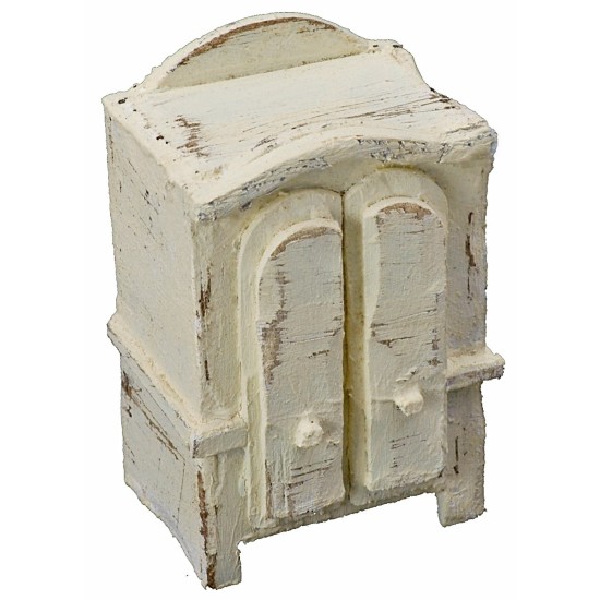 Mueble de dormitorio en madera blanca adecuado para completar casas de muñecas o belenes. El artículo ha sido producido por artesanos italianos, se recomienda para estatuas de altura de 6 cm y es posible personalizarlo con las MINUTERIE disponibles en nuestra tienda. En los productos relacionados debajo de la tabla, se encuentran otros complementos de la misma serie para completar sus ambientaciones.
